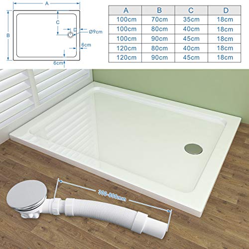 MIQU Duschwanne Acryl Duschtasse Dusche Acrylwanne 40mm flach Rechteck (100x80x4cm)