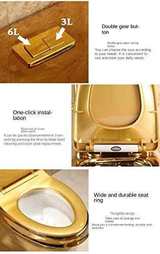 Modernes WC mit Doppelspülung und vergoldetem Design, universelle Höhe, einteiliges WC mit Doppelspülung und stummgeschalteter Keramiktoilette für das Badezimmer zu Hause (D 680 x 340 x 820