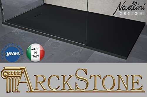 Novellini Novosolid Duschwanne, Größe 180 x 90 cm, Dicke 3,5 cm, Farbe Schwarz matt, Harz, Badezimmer, Wasserinstallation, Halterung, Draht, Boden, autorisierter Händler, zuschneidbar, dünn,