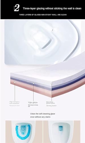 DREISCHICHTIGE GLASIERUNG UND ANTIHAFTWAND: Die Toilette ist mit einer dreischichtigen Glasierung und einer Antihaftbeschichtung ausgestattet, die das Anhaften von Schmutz und Rückständen verhindern und die Reinigung erleichtern kann.