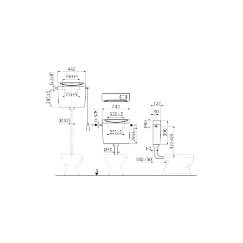 Premium Spülkasten WC Kunststoff Start/Stop Toilettenspülung, Klospülung, WC, Spülkasten 6-8 Liter, weiss Bad Aufputz Wasserspülkasten Funktionsklasse I