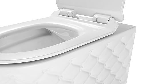 HÄNGE-WC: Die spülrandlose, weiße Toilette der Marke RD Luxury überzeugt durch ihr modernes Design und ihre hochwertige Qualität, was für längere Haltbarkeit und weniger Abnutzungsspuren sorgt. Dank des spülrandlosen Designs gibt es keine verborgenen Stellen, in denen sich Schmutz und Bakterien ansammeln können. Alles ist gut sichtbar, was die Reinigung erheblich erleichtert und für zusätzliche Hygiene und glänzende Sauberkeit sorgt.