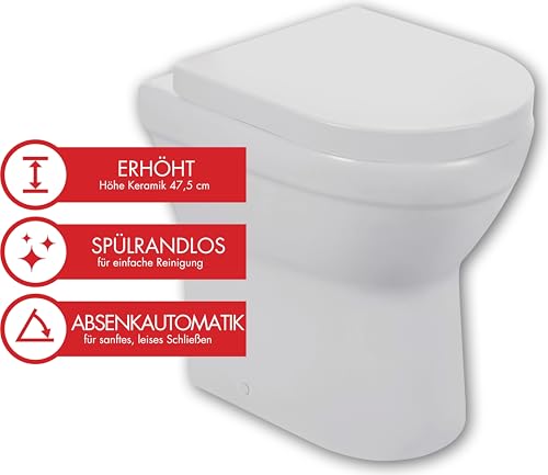 Komfortable Sitzhöhe – Erhöhte Keramikhöhe von 47,5 cm für bequemes Sitzen und Aufstehen.