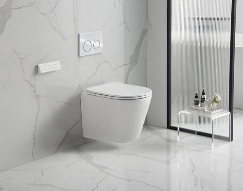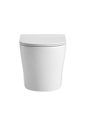 sanicomfort Hänge WC Set Nakia – Spülrandloses, Hygienisches Wand-WC Tiefspüler aus Hochwertiger Sanitärkeramik in Matt Weiß, Kompakt, Modern inkl. Soft-Close WC-Sitz