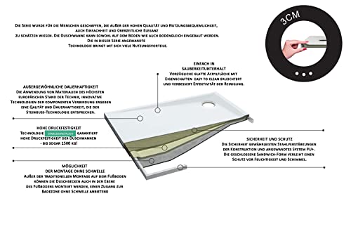 Acryl Duschwanne Gesamthöhe 3cm / integrierter Styroporträger