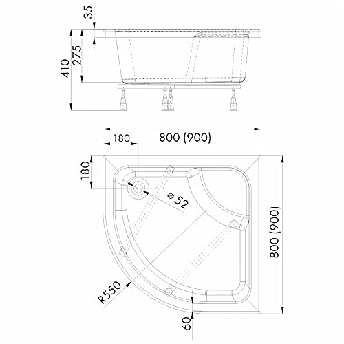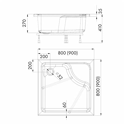 ⇒ Duschwannenhöhe: 41cm (mithilfe Träger) ⇒ Hölle: 27cm (Quadrat) 27,5cm (R55)
