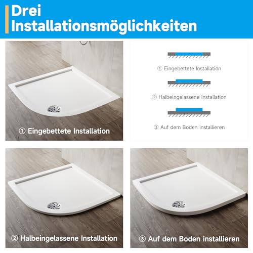 SONNI Oval Duschtasse 90x90x4 cm – Niedrigprofil Duschwanne mit 550 mm Radius, Extra Flach, SMC, Inklusive Ablaufgarnitur