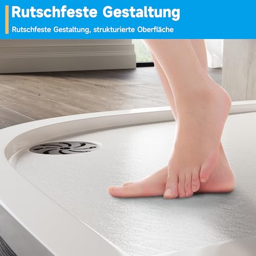 Integrierte Neigung: Der Abfluss befindet sich in der Mitte der Ellipse.Das Wasser fließt schnell ab, es bleibt kein Wasser in der Duschwanne zurück.