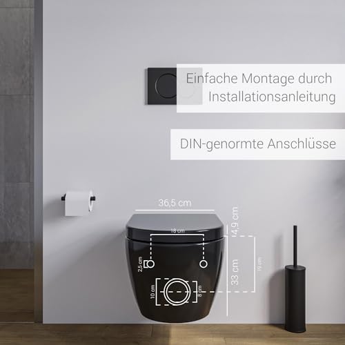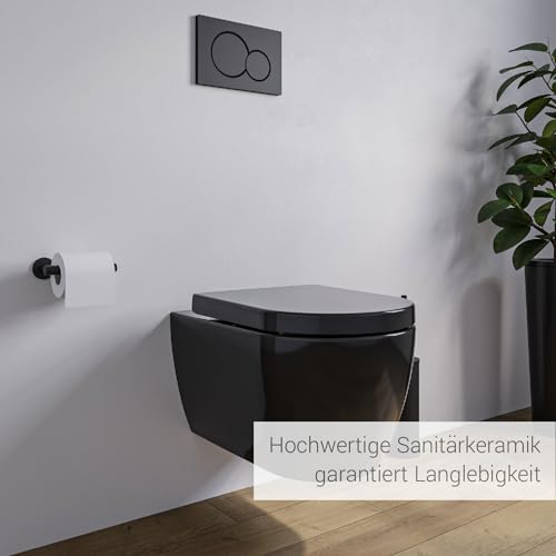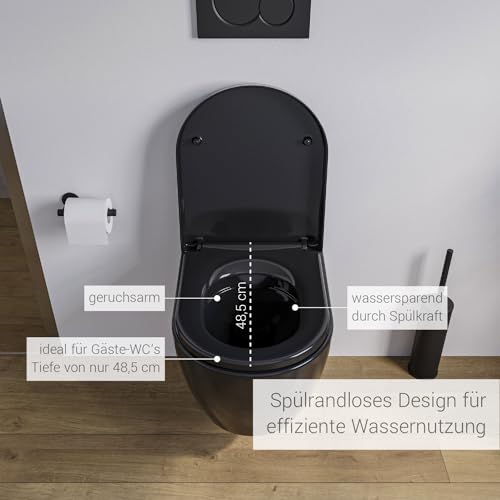 Spülrandloses Wand-WC NT2038 Schwarz verkürzte Version Ideal für Gäste WCs mit SoftClose-Deckel (Absenkautomatik) Toilette aus Sanitärkeramik mit abnehmbareren WC-Sitz, Tiefspül-WC mit Standard Deckel