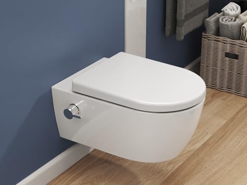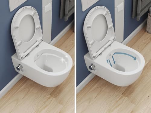SSWW Dusch WC mit Armatur, Hänge WC Spülrandlos, Bidet Funktion, Taharet, WC-Dusche mit Nanobeschichtung, WC Sitz mit Absenkautomatik, Kalt-Warm Wasser