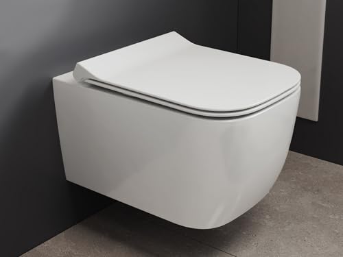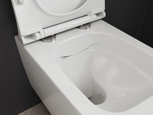 SSWW Hänge WC Spülrandlos Toilette – Eckiges Wand-WC aus Keramik mit Softclose-Toilettensitz, Tiefspüler, Nano-beschichtete Oberfläche, abnehmbarer Sitz, Montage von oben, Weiß, 49,5 × 34,5 × 33 cm