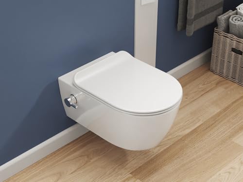 SSWW | Modernes Dusch-WC, spülrandlose Taharet Toilette mit Absenkautomatik, Toilette mit Bidet-Funktion | 52,5 cm lang