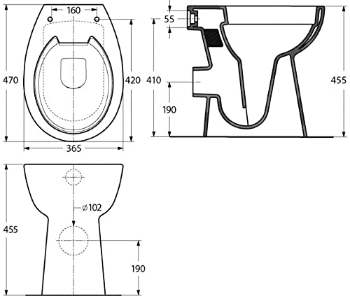 Stand Wc 6cm erhöht SPÜLRANDLOS Toilette Tiefspüler Deckel Beschichtung