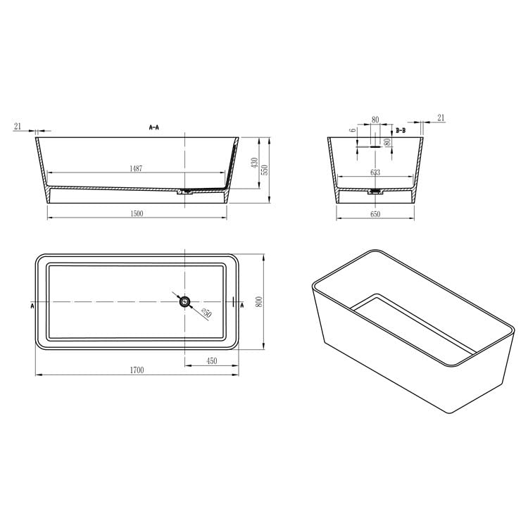STONEART Badewanne freistehend BS-551 schwarz/170×80/matt