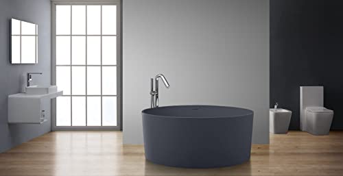 StoneArt Freistehende Badewanne aus Mineralguss Design Gussmarmor Standbadewanne moderne Wanne freistehend inkl. Ablaufgarnitur BS-507 150×150 beton-grau matt