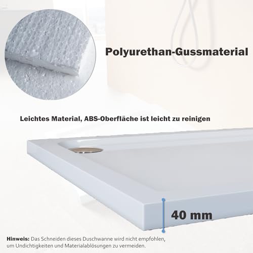 【Anti-Rutsch-Design】Die Weiß Duschwanne mittels einschließlich Siphon,besteht allesamt Polyurethan-Material. Duschtasse flach Die Antiblockiersystem Oberfläche ist rutschfest gestaltet, um Sicherheit und Konstanz zu gewährleisten.