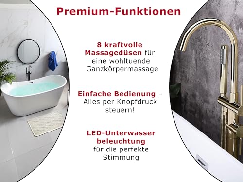 Ob allein, zu zweit oder mit der Familie – die freistehende Badewanne mit 8 kraftvollen Massagedüsen verwandelt Ihr Badezimmer in eine private Wellness-Oase und schenkt pure Entspannung.