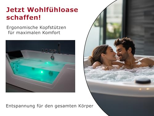 Ob nach Feierabend oder am Wochenende – die Kombination aus 10 Massagedüsen, LED-Beleuchtung und verchromten Armaturen verwandelt jedes Bad in eine private Wellness-Oase für 1–2 Personen.