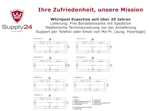 Supply24 since 2004 Whirlpool Badewanne „Venedig“ – Made in Germany – ohne Armaturen