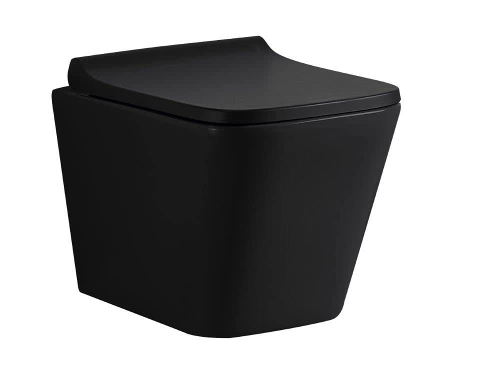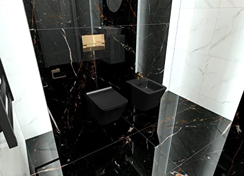 Tece Vorwandelement Base inkl. Drückerplatte chrom + Lavita Wand WC Lago Black ohne Spülrand + WC-Sitz mit Soft-Close-Absenkautomatik