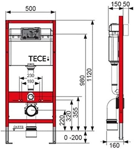 Tece WC-Vorwandelement inkl. Spülkasten mit 10 Liter Volumen (3/6 Liter Spülmenge eingestellt, Spülmenge einstellbar: [3/4.5] , [3/7.5] , [3/9]). Wasseranschluss oben. Inkl. Drückerplatte in Chrom