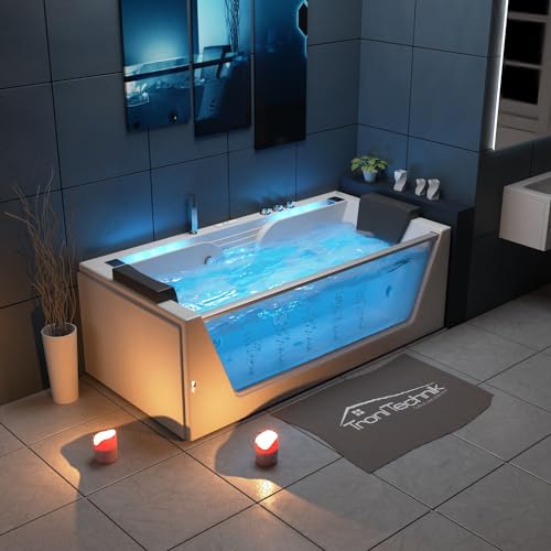 Tronitechnik® Whirlpool Badewanne KOS 2 179cm x 85cm für 1-2 Personen mit Heizung, Hydromassage, Bachlauf und LED Farblichtherapie