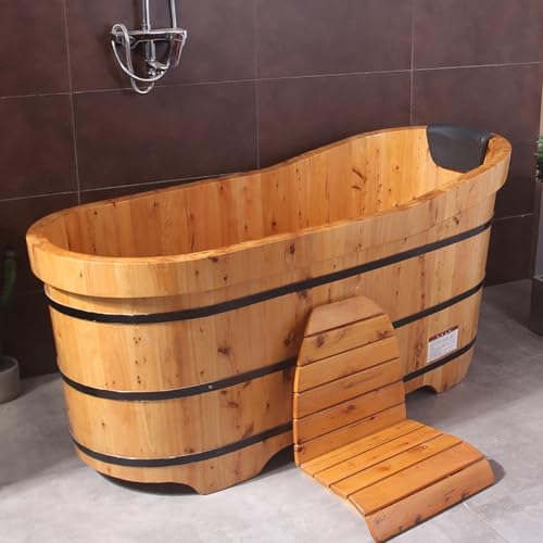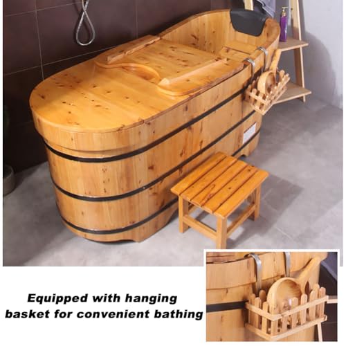 Komplettes Badewannenset: Sie erhalten eine komplette Holzbadewanne, eine Bank mit einer Rückenlehne, ein Abflussrohr und ein Metallablassventil, eine Außenbank, eine Isolierabdeckung, einen Lagerkorb und eine Holzkelle.