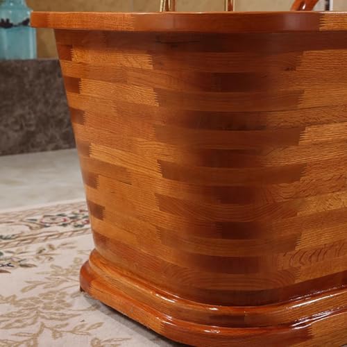 Modernes natürliches Design: Die freistehende Eichenbadewanne kombiniert natürliche Eleganz mit modernem Design, um ein luxuriöses Badeerlebnis zu andienen.Sein reichhaltiges Holzkorn und sein tiefes Einweichenbecken erzeugen in jedem Badezimmer einen Spa-ähnlichen Entspannungsort.