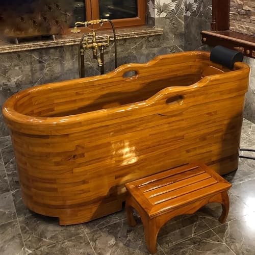Natürliches Eichenmaterial: Die gesamte Badewanne besteht aus massivem Messen, sorgfältig ausgewähltes Holz, handgefertigt, exquisiter Handwerkskunst, Eiche hat die Eigenschaften einer hohen Härte und hoher Dichte, Kratzwiderstand, nicht leicht zu knackig, die ordnungsgemäße Wartung wird die Lebensdauer des Fasses verlängern.