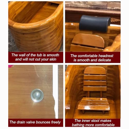 Intime Details: Die Wand der Wanne ist glatt und schneidet die Haut nicht.Es ist handpoliert und jedes Holzfass ist mehr als fünfmal poliert.Bequeme Kopfstütze, glattes und empfindliches Gefühl, Lichtbogenform, technisches Design, Popup-Abflussventil, bequeme Entwässerung, bequemer Innenhocker, bequemeres Baden.