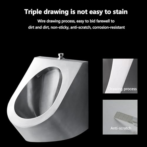 【 LANGLEBIGES MATERIAL 】 Das Urinal besteht alle Edelstahl 304, die Oberfläche wurde gebürstet, rostet nicht leicht, kratzfest, Anti-Fingerabdruck, leicht zu reinigen, langlebig, es ist einfacher zu reinigen und zu warten als Keramik-Urinale.