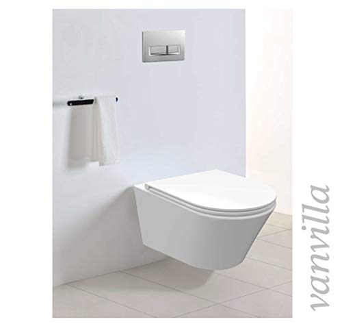 MONTAGE: Durch die genormten Anschlüsse ist diese Hänge Retirade zur universellen Wandmontage angemessen und leicht an ein Standard Vorwandelement anzubringen. Vulgo der mitgelieferte Toilettensitz mit SoftClose Diagramm ist massiv einfach zu montieren. Die passenden Schrauben sind natürlich im Lieferumfang enthalten.