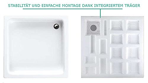Modernes Design: Hochwertige, alleinig flache Duschwanne inkl. Acrylabdeckplatte für optimalen Wasserabfluss beim Duschen. Eine leistungsstarke Ablaufgarnitur der Firma rundet dieses tolle Komplettset ab.