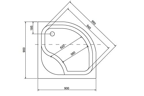Maße der Duschwanne: 90x90x26, Acrylhöhe: 39 cm, inkl. Schürze und Ablaufgarnitur