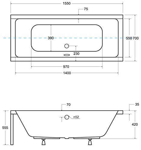 HIGHLIGHTS Beständiger und stabiler Aufbau, Badewanne aus einem Ausbelichtung, Glasfaser verstärkte Wanne, Beim Betreten nicht fußkalt, Reinigungsfreundlich und hygienisch, Antibakterielle Oberfläche, Feuchtigkeits- und Schimmelpilzbeständigkeit, Thermische und akustische Dämmung, Müll für reibungslosen Abflusskanal, Einfache und schnelle Montage, Ø50mm Ablaufloch.