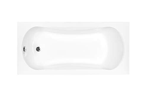VBChome Badewanne 160×70 cm Acryl SET Wannenträger Siphon Wanne Rechteck Weiß Design Modern Styroporträger Ablaufgarnitur in Chrom Viega Simplex (160×70 cm)