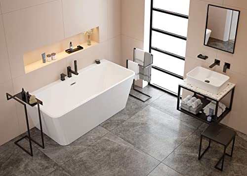 VBChome Badewanne 160×75 cm Weiß Acryl SET Wandmontierte Badewanne Freistehend Eingebauter Überlauf Siphon Inklusive Modern Elegant Top Qualität
