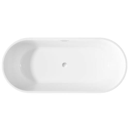VBChome Badewanne 170 x 75 x 58 cm Weiß Acryl SET Premium Freistehend Badewanne Eingebauter Überlauf Siphon Chrom Inklusive Modern Komfort Elegant Top Qualität