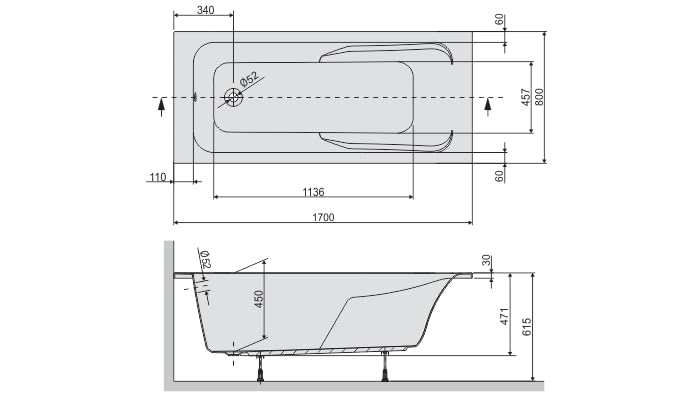 LED-Stabilisierungsträger ermöglichen den dauerhaften Einbau von Rechteckbadewannen mit einer Länge von 140 bis 170 cm und einer Breite von 80 cm. Darüber hinaus verfügen diese Modelle über einen werksseitigen Fußausschnitt/LED-Beleuchtung rund um den Träger.