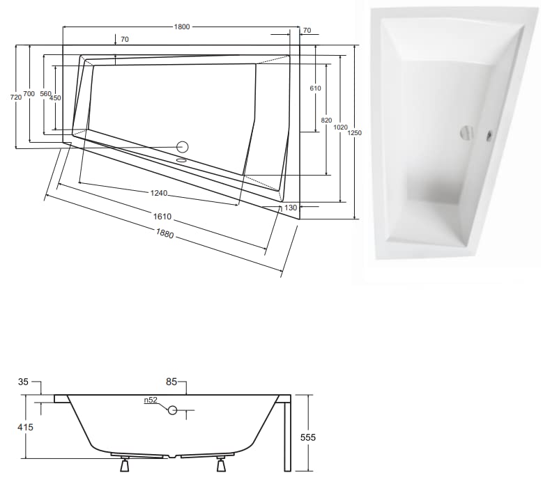 Badewannen die Gesamtheit Sanitäracryl haben eine perfekt glatte Oberfläche, wodurch sie außergewöhnlich pflegeleicht sind. Acryl ist ein Material mit hervorragenden Wärmedämmeigenschaften, das dafür sorgt, dass die Oberfläche der Badewanne die Wassertemperatur lange hält.