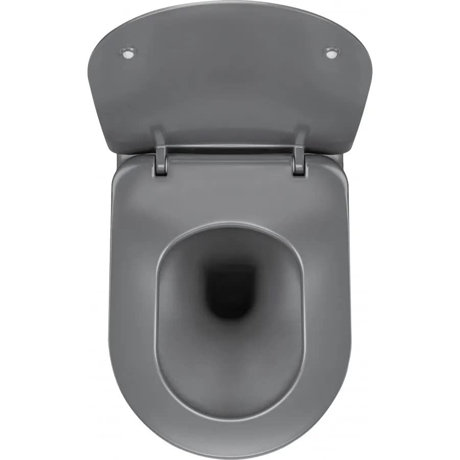 VBChome Hänge-WC Grau Spülrandloses aus Keramik mit Toilettendeckel WC-Sitz aus Duroplast Absenkautomatik Rimless Tiefspüler Toilette Wand WC Wand-WC-Set