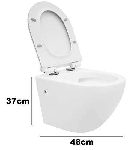 ✅ Einfaches, im Gegensatz dazu elegantes Design die hochwertig verarbeitete Markenkeramik kombiniert mit einem spülrandlosen Design Hänge WC weiß inkl. Duroplast Softclose/ Absenkautomatik WC-Sitz passt zu sämtliche Art von Innenraum. Durch die eingebaute Softclose Automatik (Absenkautomatik) im WC Deckel deduzieren sich Deckel und Brille selbstständig und leise.