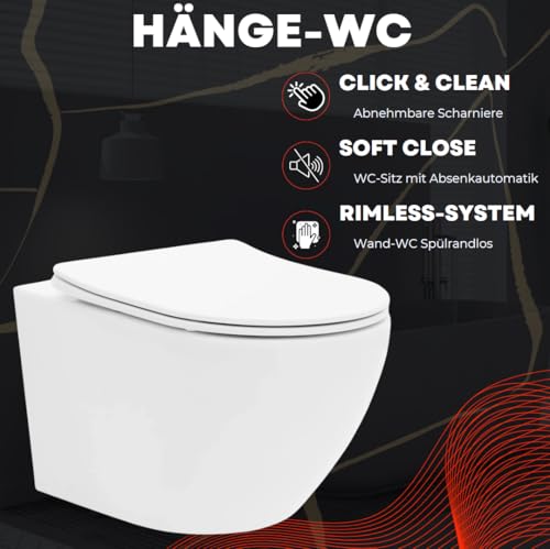 Einfaches, wohl elegantes Design die hochwertig verarbeitete Markenkeramik kombiniert mit einem spülrandlosen Design Hänge WC weiß inkl. Duroplast Softclose/ Absenkautomatik WC-Sitz passt zu jeder Art von Innenraum. Durch die eingebaute Softclose Automatik (Absenkautomatik) im WC Deckel verallgemeinern sich Deckel und Brille selbstständig und leise.