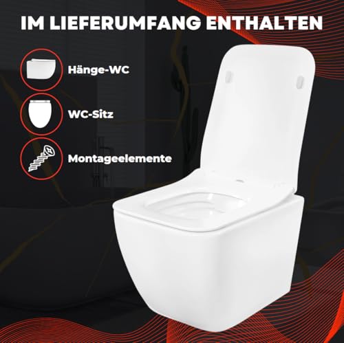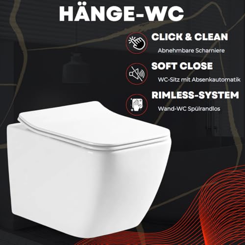 VBChome Hänge-WC Spülrandloses aus Keramik mit Toilettendeckel WC-Sitz aus Duroplast Absenkautomatik Rimless SoftClose-Funktion Tiefspüler Toilette Oval Form Wand WC