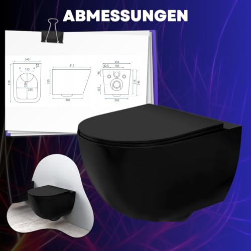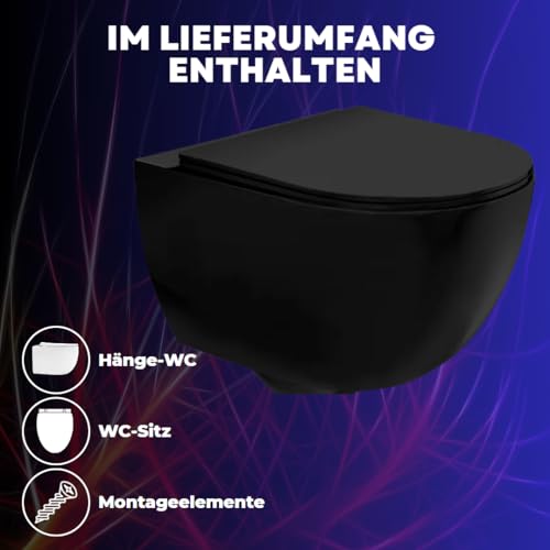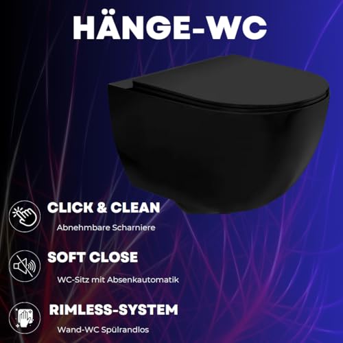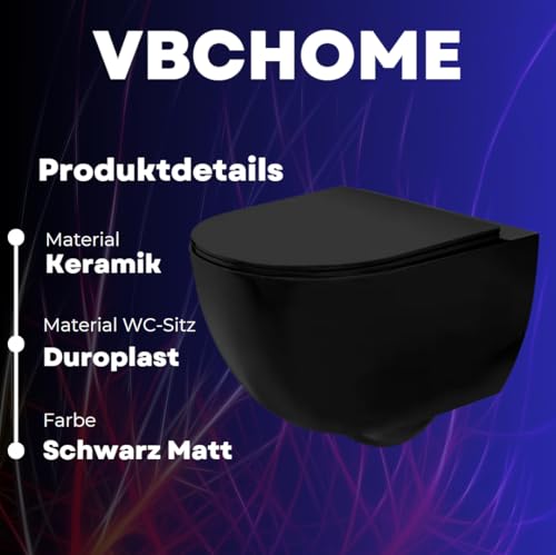 VBChome Hänge-WC Spülrandloses aus Keramik mit Toilettendeckel WC-Sitz aus Duroplast Absenkautomatik Rimless SoftClose-Funktion Tiefspüler Toilette Schwarz Matt Oval Form Wand WC