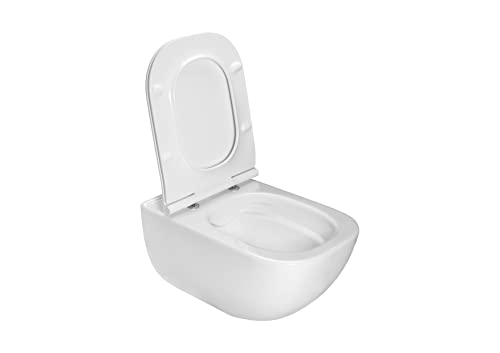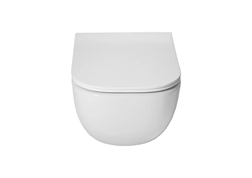 VBChome Hänge-WC Weiß Spülrandloses aus Keramik mit Toilettendeckel WC-Sitz aus Duroplast Absenkautomatik Tiefspüler Toilette Wand WC Wand-WC-Set Modern Elegant