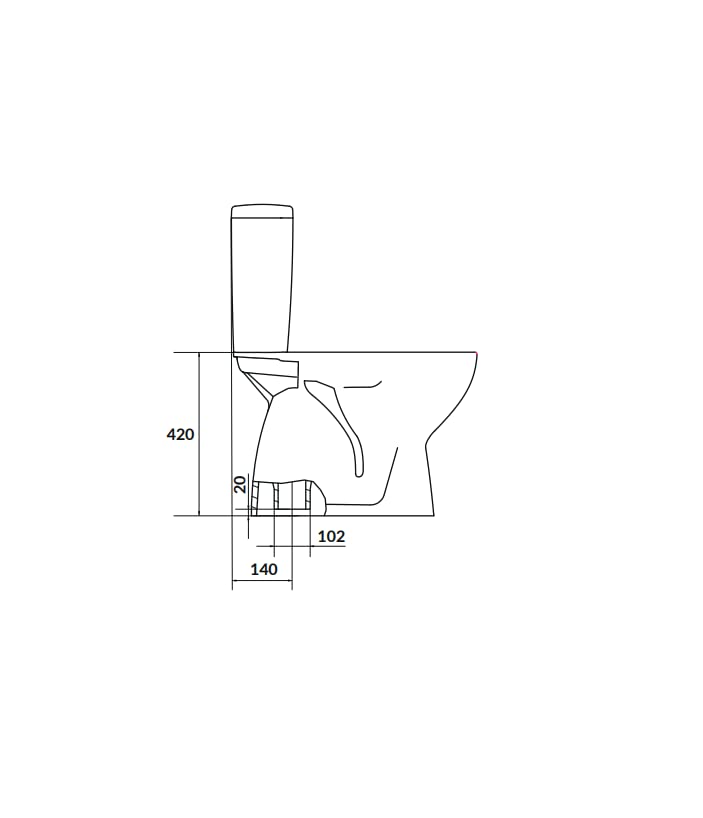 Das kompakte Aggregat ist mit einem senkrecht Ablasskanal und einem Wasserzulauf seitlich am Tank ausgestattet. Der Gebühr gilt für einen Compact mit duroplastischem, antibakteriellem Slow-Close-Sitz mit Easy-Off-Bild.