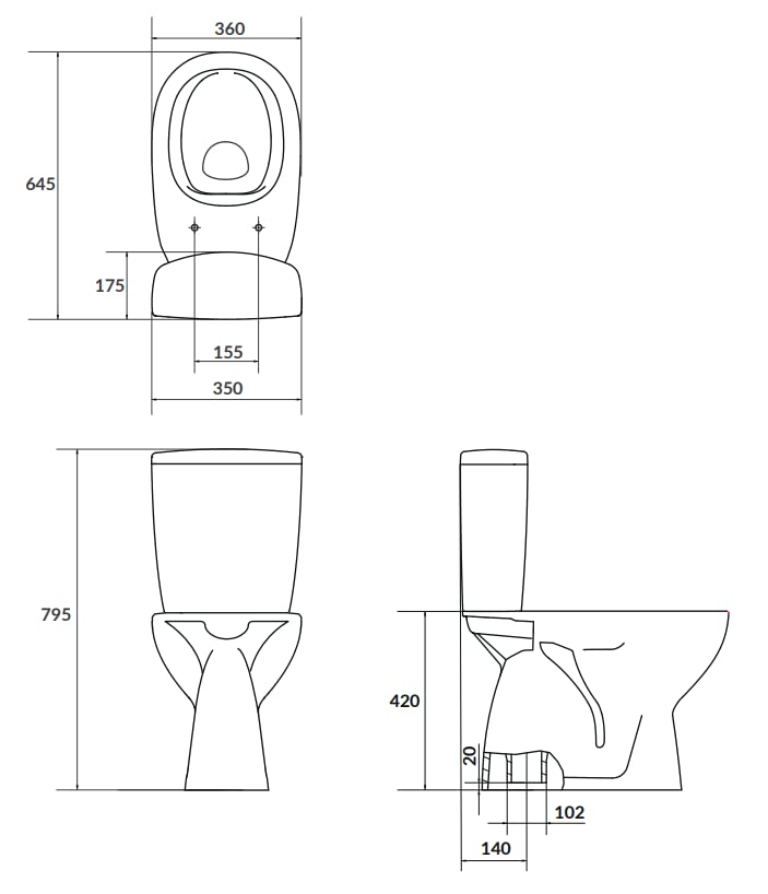 Der Kompakte verwendet ein sparsames Wasserspülsystem, 3 / 5l. Die Form der Schüssel wurde so gestaltet, dass die gesamte Dose an der Wand haftet und somit die Ablaufelemente nicht sichtbar sind, was ein erstaunliches Gefühl von Ästhetik und Modernität vermittelt.