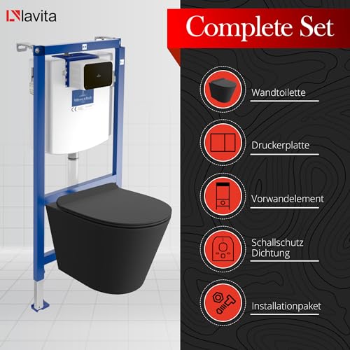 KOMPLETT-PAKET: Villeroy&Boch Vorwandinstallationssystem ViConnect H112 mit Zweimengen-Bedienfeld + Wand WC Galve Black
