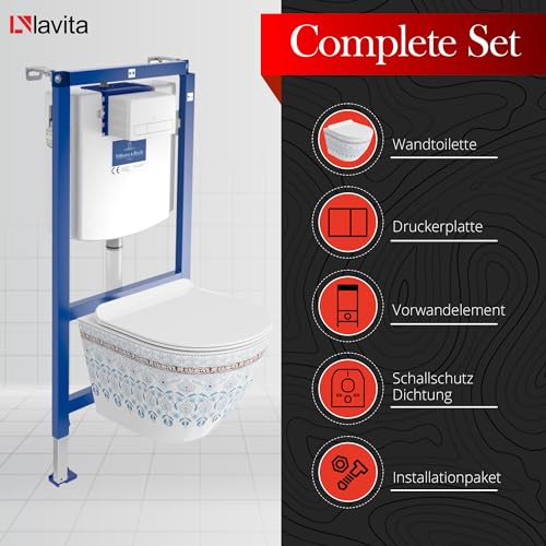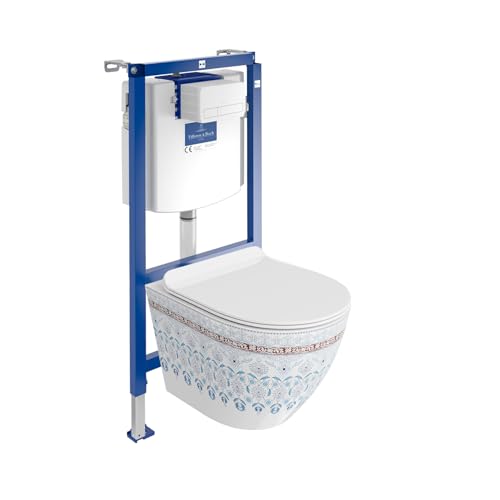 KOMPLETT-PAKET: Villeroy&Boch Vorwandinstallationssystem ViConnect H112 mit Zweimengen-Bedienfeld + Wand WC Sofi Slim Folklor
